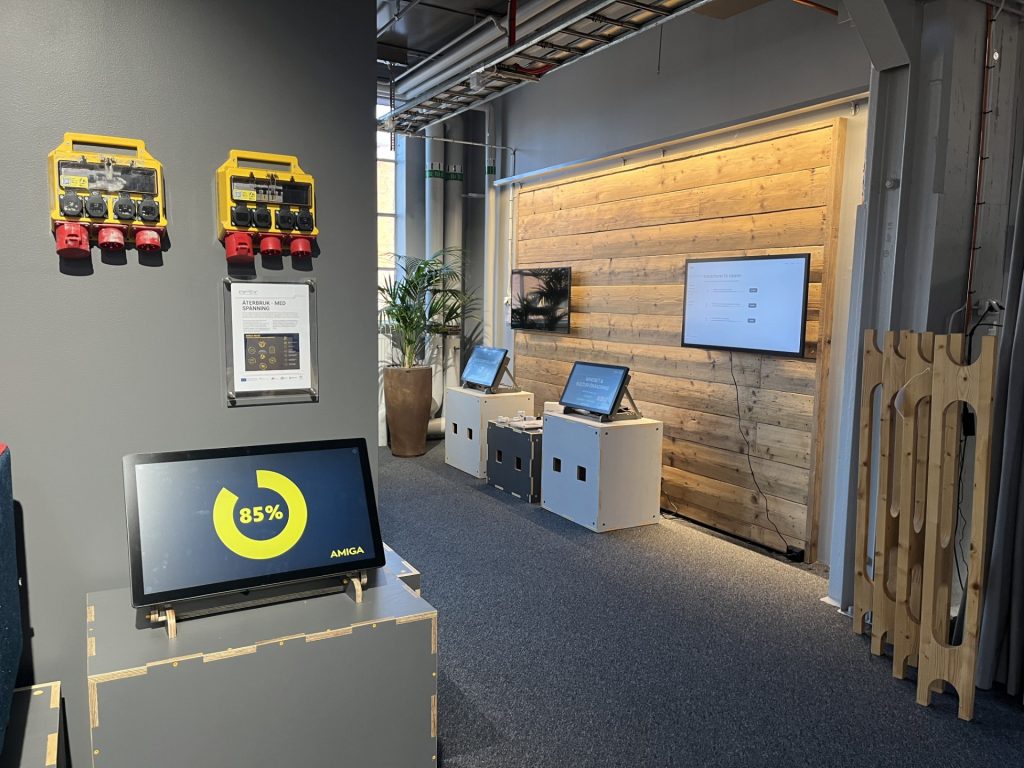 Amiga utvecklar lösningar för tillfällig el och arbetsbelysning i byggprojekt. Genom konceptet Amiga Reuse kan produkter tas tillbaka efter användning, servas och användas i nya projekt i stället för att kasseras. Det innebär att produkter som tidigare hade ett kort liv kan användas flera gånger. För företag innebär det möjligheter att både minska resursanvändningen och skapa nya affärsvärden.